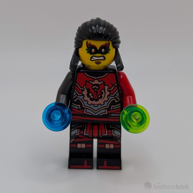 Acronix and Krux make their triumphant return to LEGO Ninjago with their classic young appearances. Both wear black and red suits and look fantastic. Acronix’s head features a smiling expression as well as an angry scowl, most likely peeved that he was sent into the future without his brother.