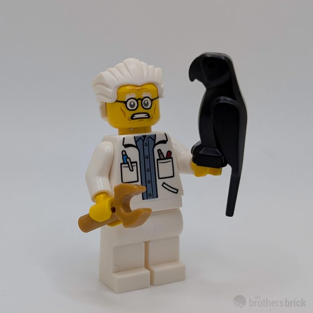 First we have Dr. Julien, the enigmatic tinkerer finally appears in a set! As Zane’s father/Creator and inventor of the nindroids, Dr. Julien looks the part in his scientist lab coat. His head features two expressions, one of manic joy and the other nervous, perhaps an experiment isn’t going the way he wanted it to… Dr. Julien comes equipped with the robotic Falcon who unfortunately uses the classic LEGO parrot piece in black rather than the specialized falcon mold we saw in the 71037-5 – Falconer CMF figure. I would have loved to see the falcon include some form of printing to make it stand out a bit more… Oh well…