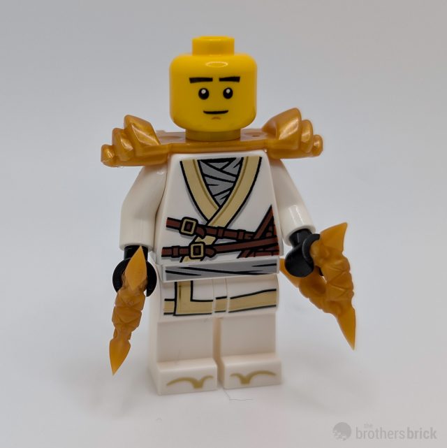 Jay’s head features a grimace as well as a smile and carries a pair of nunchucks into battle. These nunchucks make great use of the new chain component once again in pearl gold.