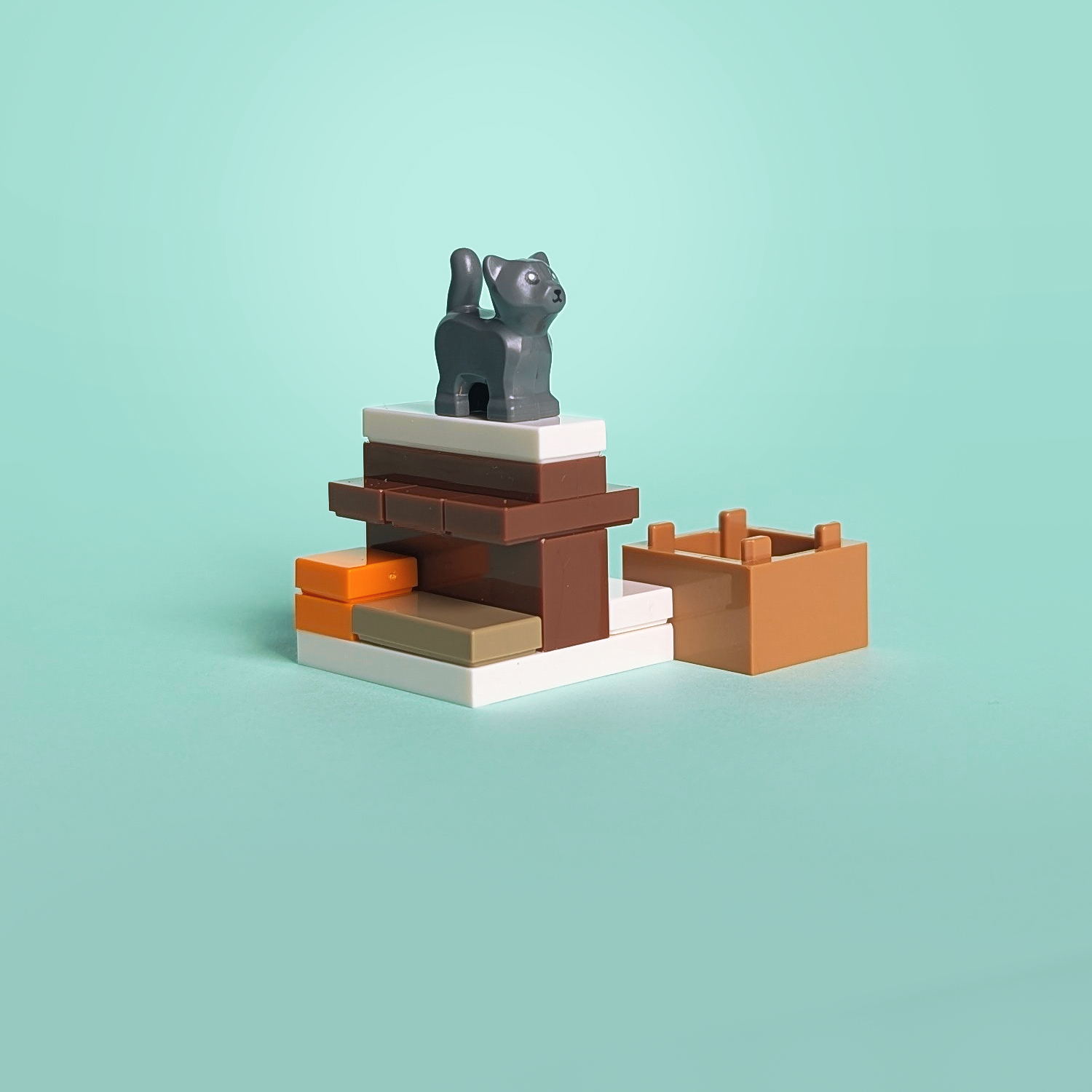 Bones: An adorable kitten and a cardboard box. Of course, nothing makes a cat happier than a box… But maybe for a child, a little something extra to build wouldn’t hurt.