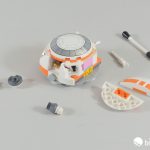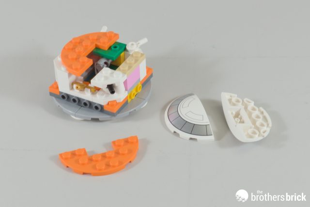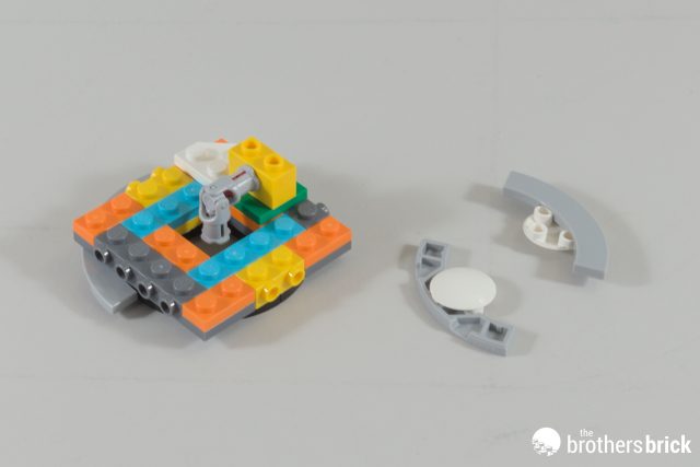 The next order of business is closing up some of the gaps. BB-8’s orange paneling is depicted almost entirely with printing; two designs across four 8×8 dishes. They’re mounted on turntables, presumably to give the effect that BB-8 ‘rolls’.