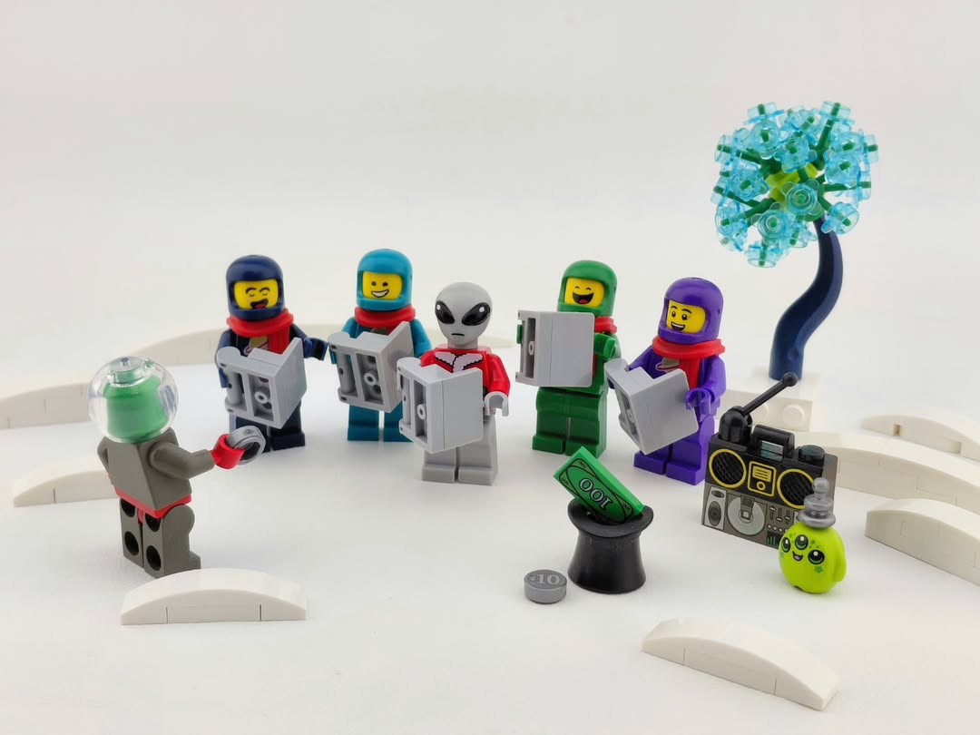 Classic Space carollers trade oxygen tanks for carves and sing about radars and mistletoe.