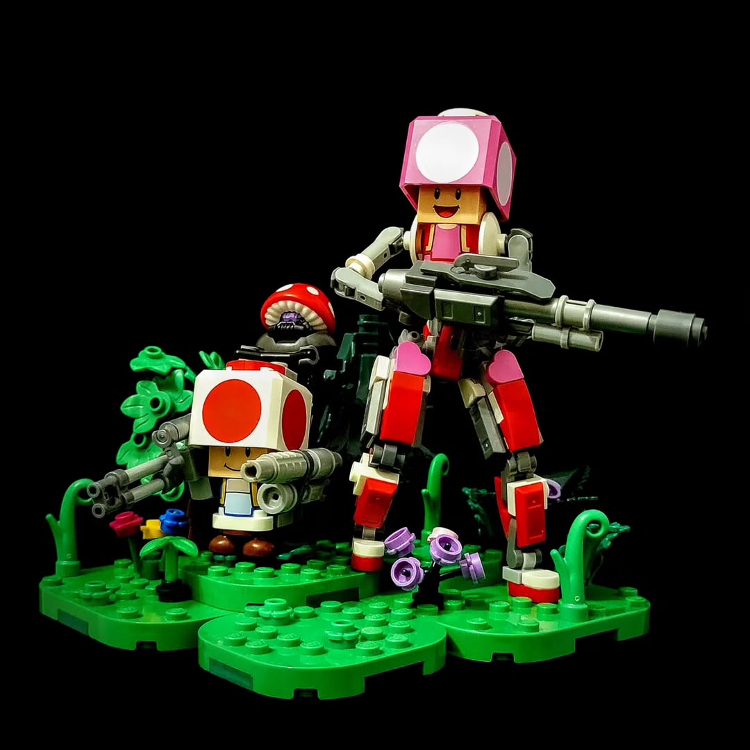 Meanwhile, in the Mushroom Kingdom T.O.A.D.E.T.T.E. in AI-enhanced power armor leads the charge. Thorben credits Brickbot Studio for the power armor frame fundamentals.