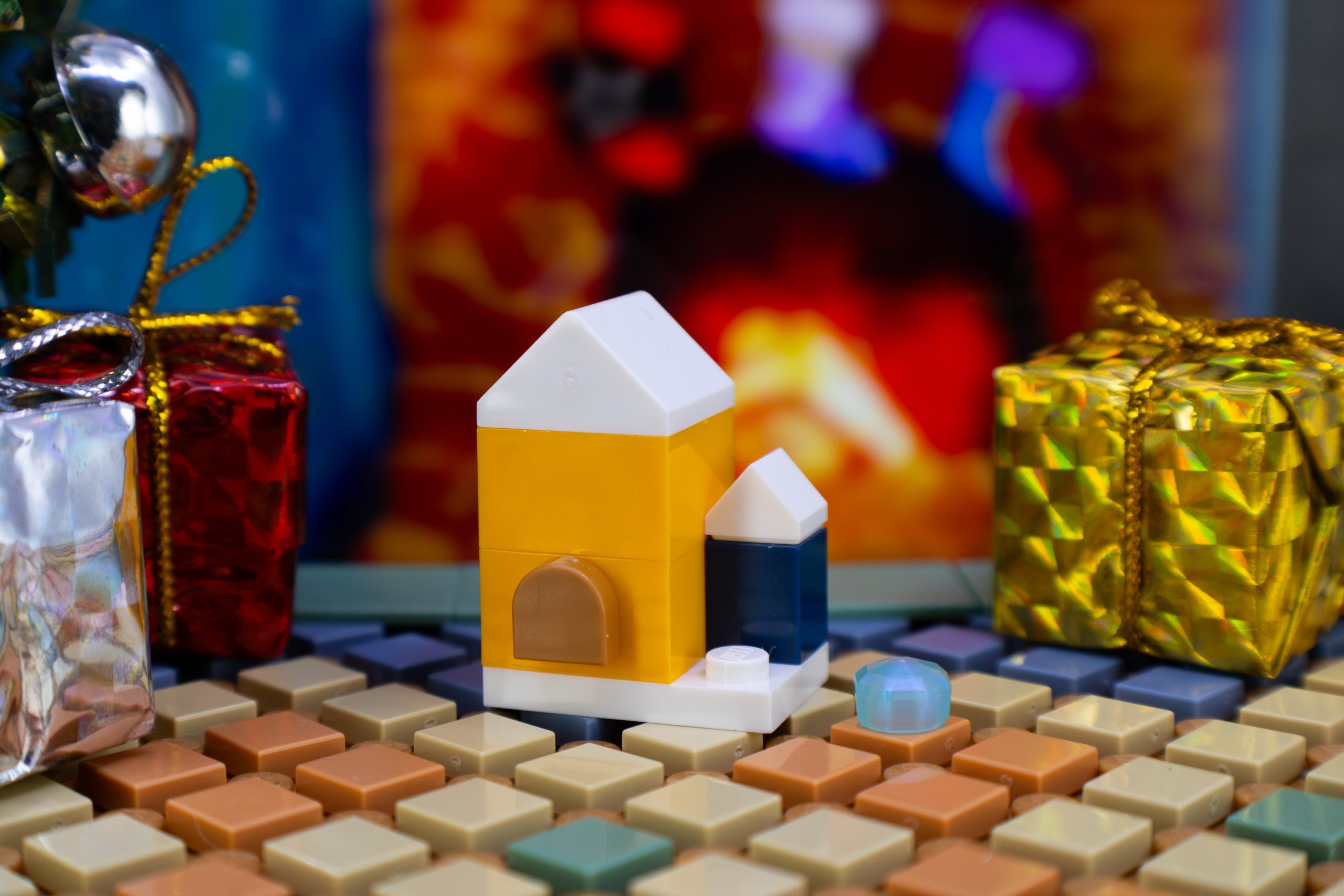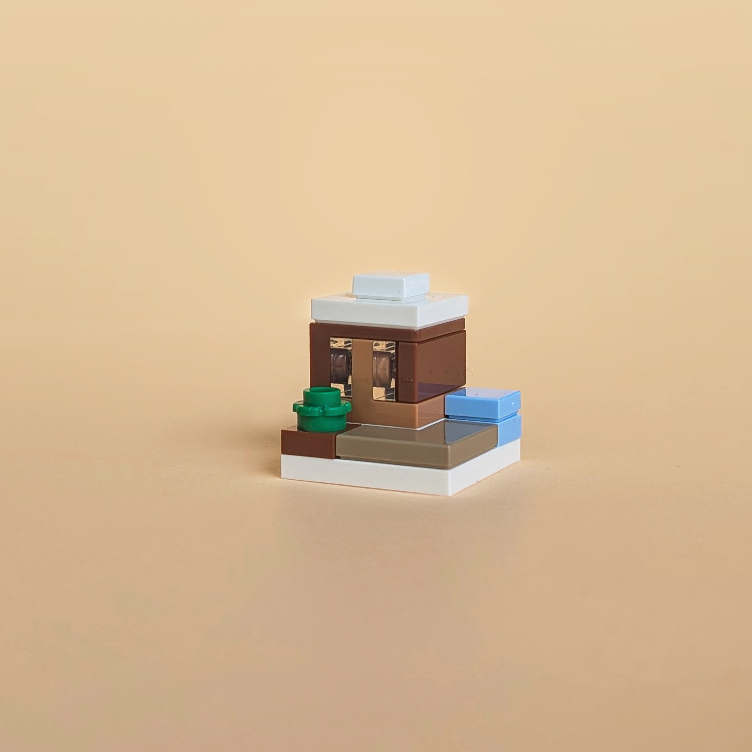 Bones: Another microscale house, like Day 11, but even better this time. The use of bracket 41682 and two transparent plates is incredibly effective for representing windows at such a tiny scale. Adorable.