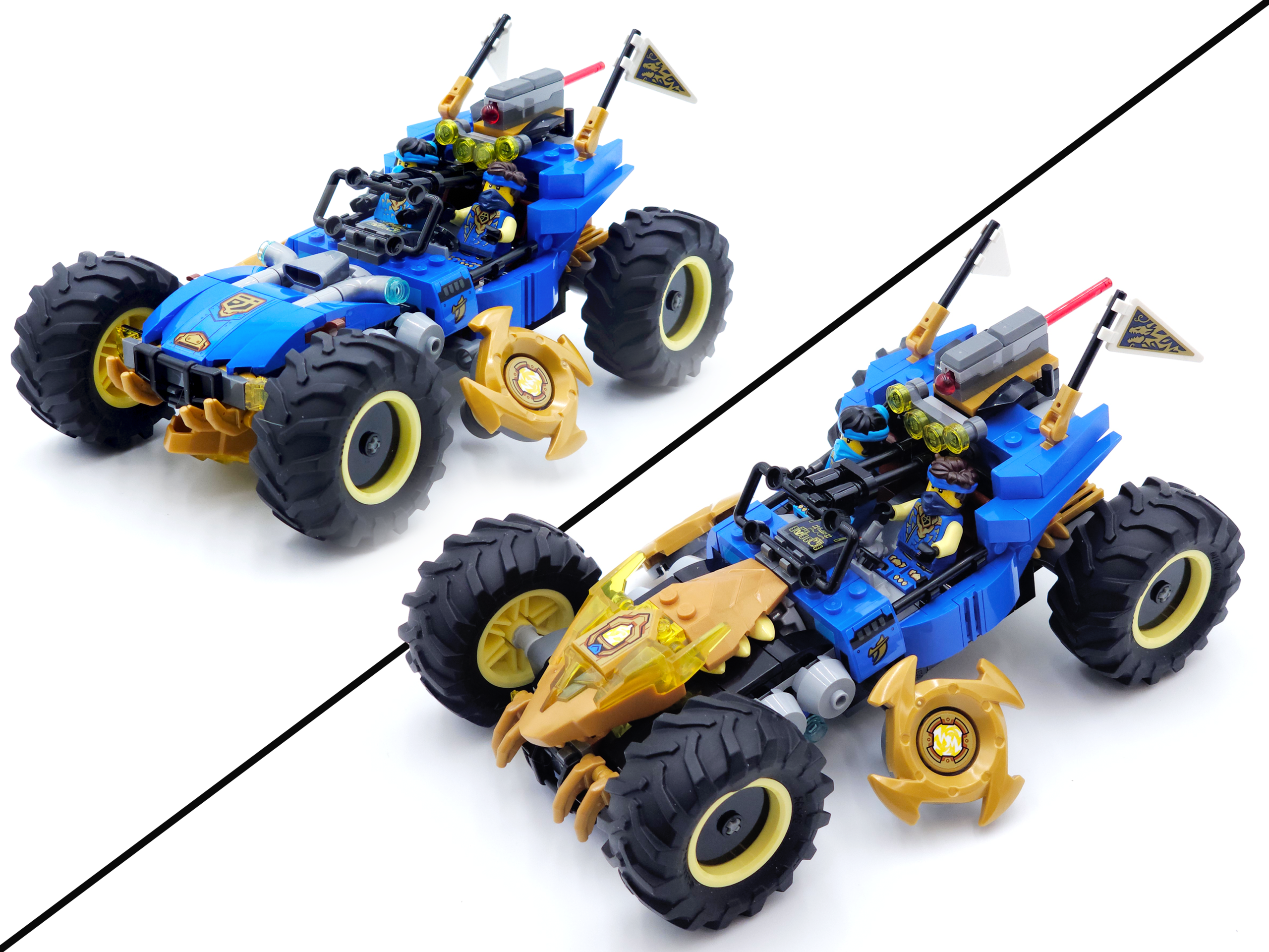 Jay continues his blue vehicle legacy with one of the coolest cars in my collection – and hands down my favorite set of the bunch. It comes with Nya and Jay in their new clothes, the Loyalist Leader, an Earth Monster with 3 of the new pincers/claws, and full Dragon Form Kai.