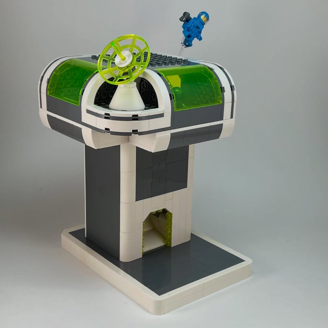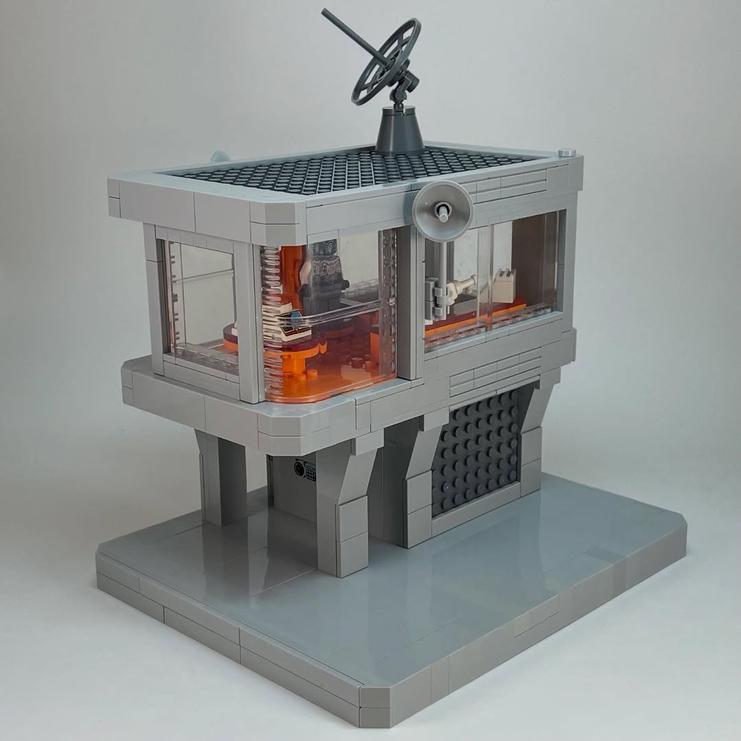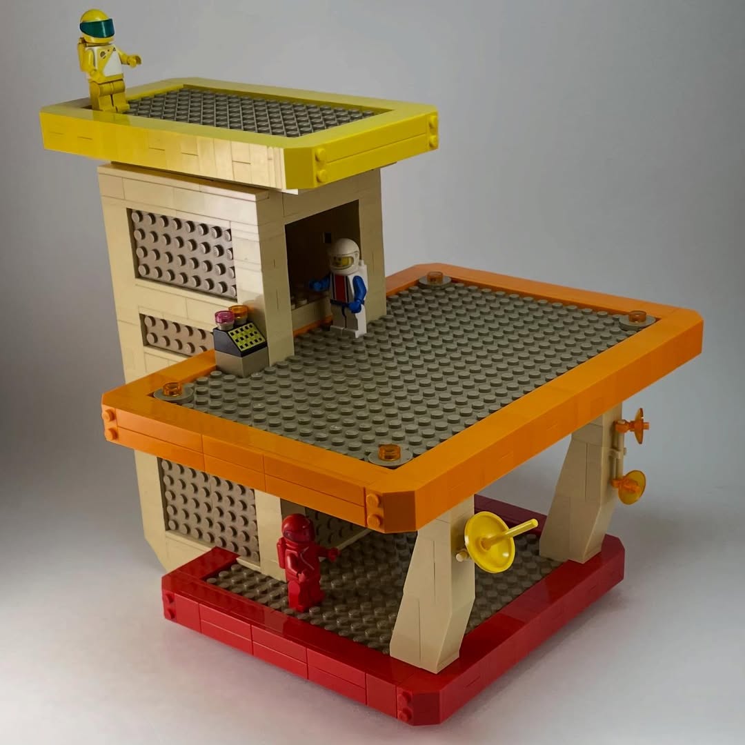 My favorite of edeofhearing’s outposts is probably this minimalist take with flat grey plates framed by bright colors. It evokes early 80s toy aesthetics with vintage LEGO elements while looking nothing like LEGO products of the time, like a set that came through a wormhole from a different LEGO timeline.
