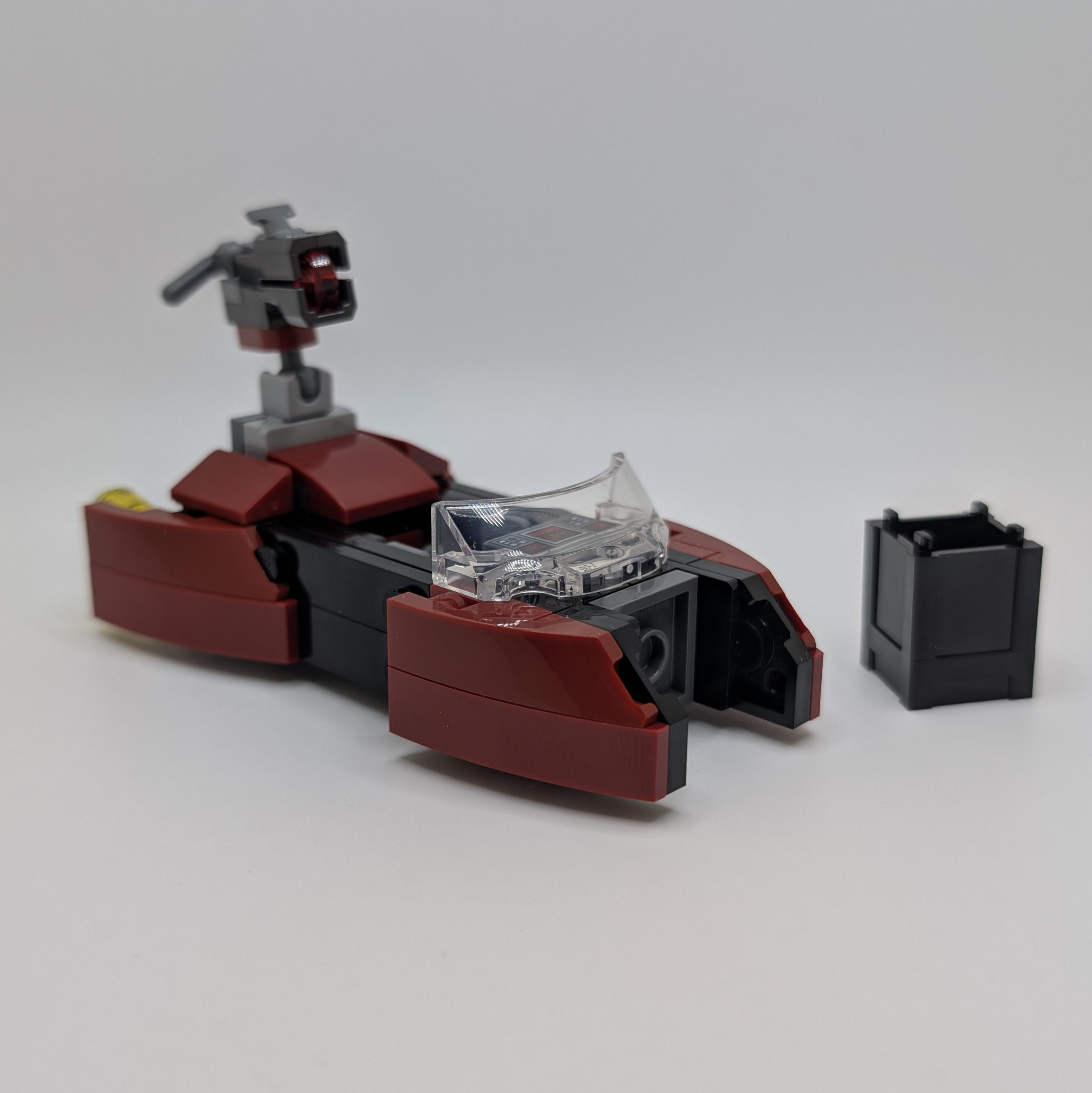 The Mandalorian Super Commandos arrive in a small battle speeder that matches their dark red and grey aesthetic fairly well. The build itself is simple, as expected for a battle pack, but the use of angled slopes does give it some decent shaping and visual interest.