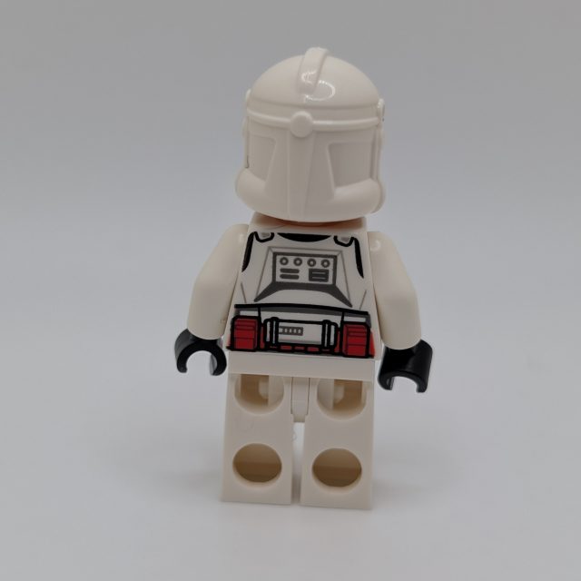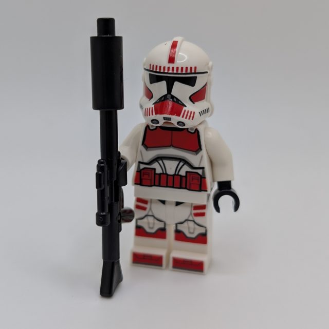 The includes a single minifigure, a lone Clone Shock Trooper of the Galactic Republic. The figure’s printing looks great, although not a whole lot has changed since we last saw this particular trooper variant in the Clone Trooper & Battle Droid pack from 2024. That being said, the Shock Trooper still looks fantastic, with bold red markings clearly denoting his elite status within the Republic’s forces. The figure is armed with a long blaster rifle, which fits the character well and adds to the overall presence of the minifigure.