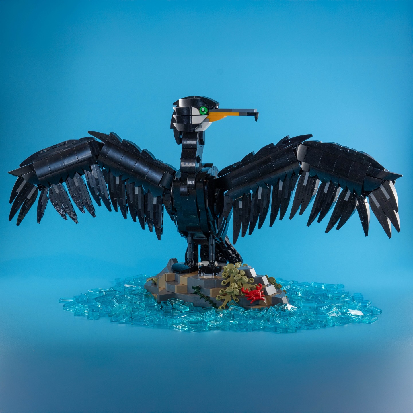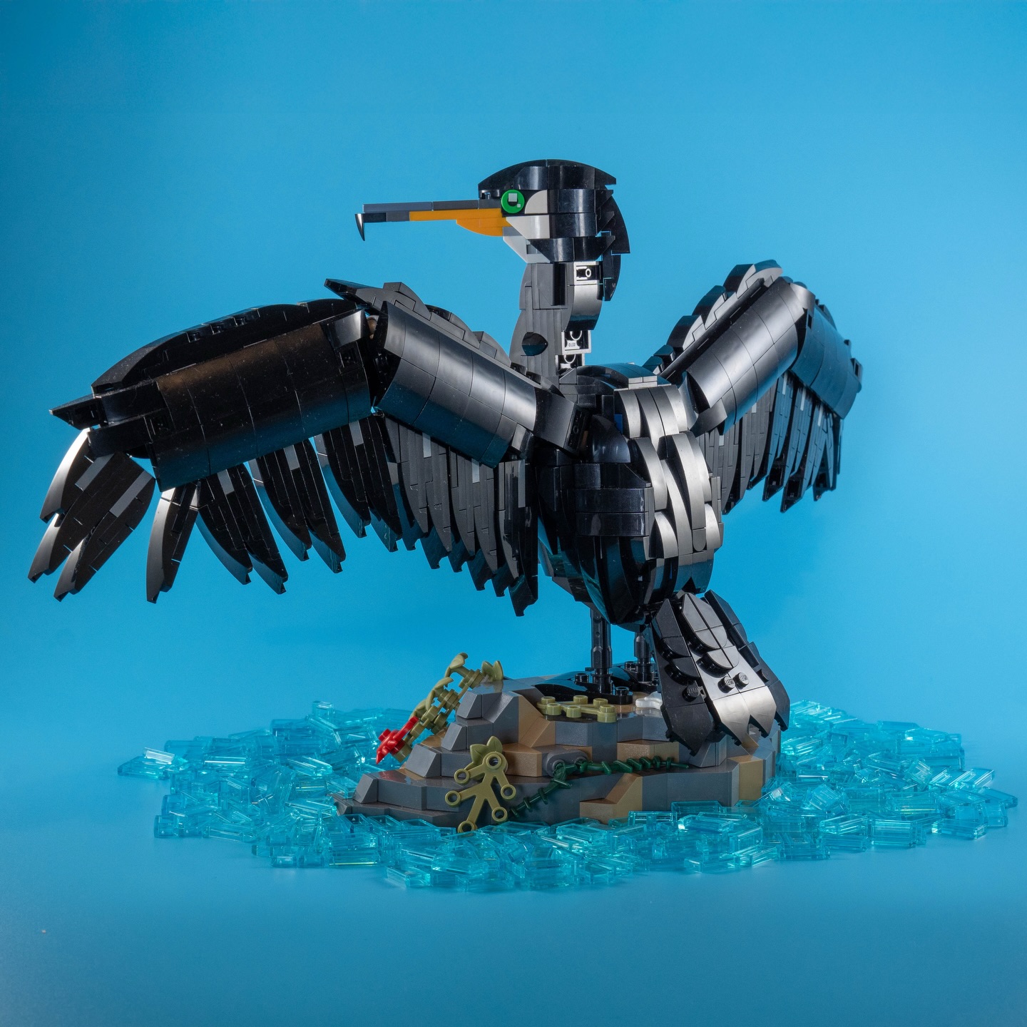 Nature photographer and bird-building extraordinaire Bram (skabram.builds) recently re-worked an older creation and shared this absolutely stunning Cormorant build! Bram is no stranger to incredible bird builds and has a unique ability to capture their likeness in brick form, but this is the largest creation we’ve seen from him yet and makes for a striking display piece. The head rotates, the wings are flexible via the use of various ball-joints, and there’s an alternate display in which the bird’s wings are tucked in. Our favorite view is the imposing wingspan side profile below, but this build is a sight to behold no matter which angle you view it from.