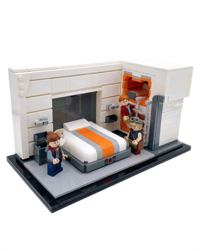 I slept on going to the Star Wars: Galatic Starcruiser experience, and now I can’t sleep there. But, thanks to Brian (_tm31__), we can all bring the themed hotel room home in LEGO form. Brian has captured the resort’s Star Wars production design in a wonderful little vignette showing how the whole family can relax in comfort after a day exploring the galaxy. There’s a bed big enough for a wookie that mom and dad can rest on, and two bunks with padding that calls back to the Millenium Falcon’s corridors for the little Jedis in the family.