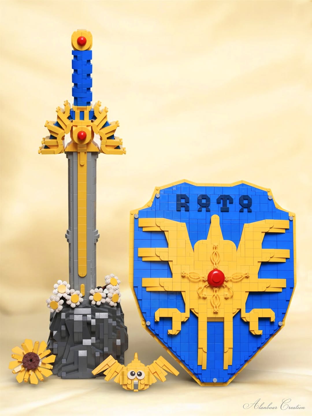 I’m old enough to remember when Nintendo Power gave away a free Dragon Warrior cartridge to every new subscriber. Despite that push, the Dragon Quest franchise never gained the cultural clout in the US that it did in Japan, but even if you’ve never played the games, you can’t escape the impact they’ve had on RPGs. Builder Alanboar Cheung pays tribute to the king of JRPGs with these brilliant LEGO models of the hero Erdrick’s sword and shield (Roto in the Japanese original, as seen in the lettering). LEGO’s bright primary colors are a perfect match for the art from Akira Toriama (of Dragonball fame). If you’re wondering what the yellow detailing on the shield is made from, those rubber bits are dog sled harnesses, found in a single Friends set!