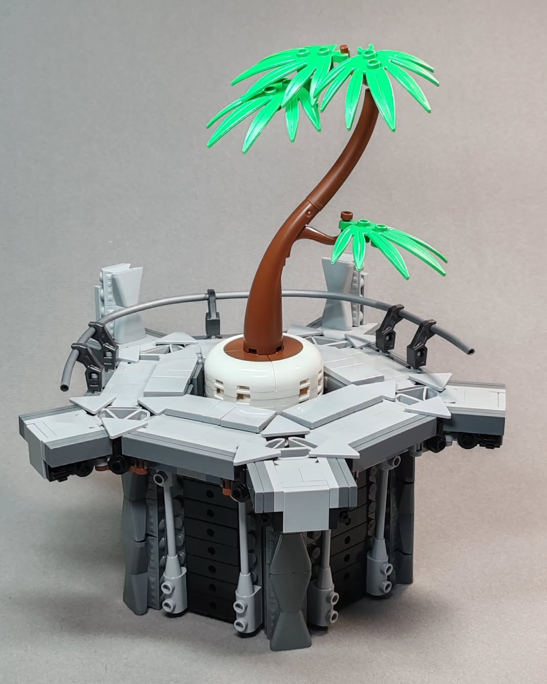 While ot named as a Star Wars build, this sci-fi catwalk definitely feels like it comes from a galaxy far far away, evoking the ports of call made by Iron Builder alum Tim Goddard. The seed part is conspicuously used for vertical pylons, but did you notice the triangular arrangement in the five corners of the walkway? That’s some impressive geometry!