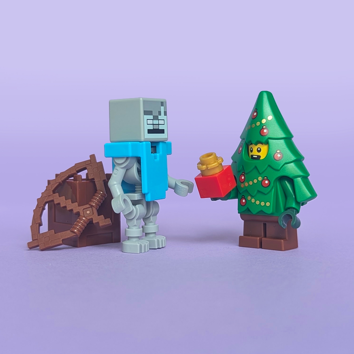 Bones: Today’s Minecraft gift is pretty complete: a few accessories, including a bow, a box, and some snowballs. But most importantly, a skeleton equipped with armor, which completes the helmet from Day 9 for a full set. Like the polar bear from Day 15, this Stray is a carbon copy of the one found in set 21277.