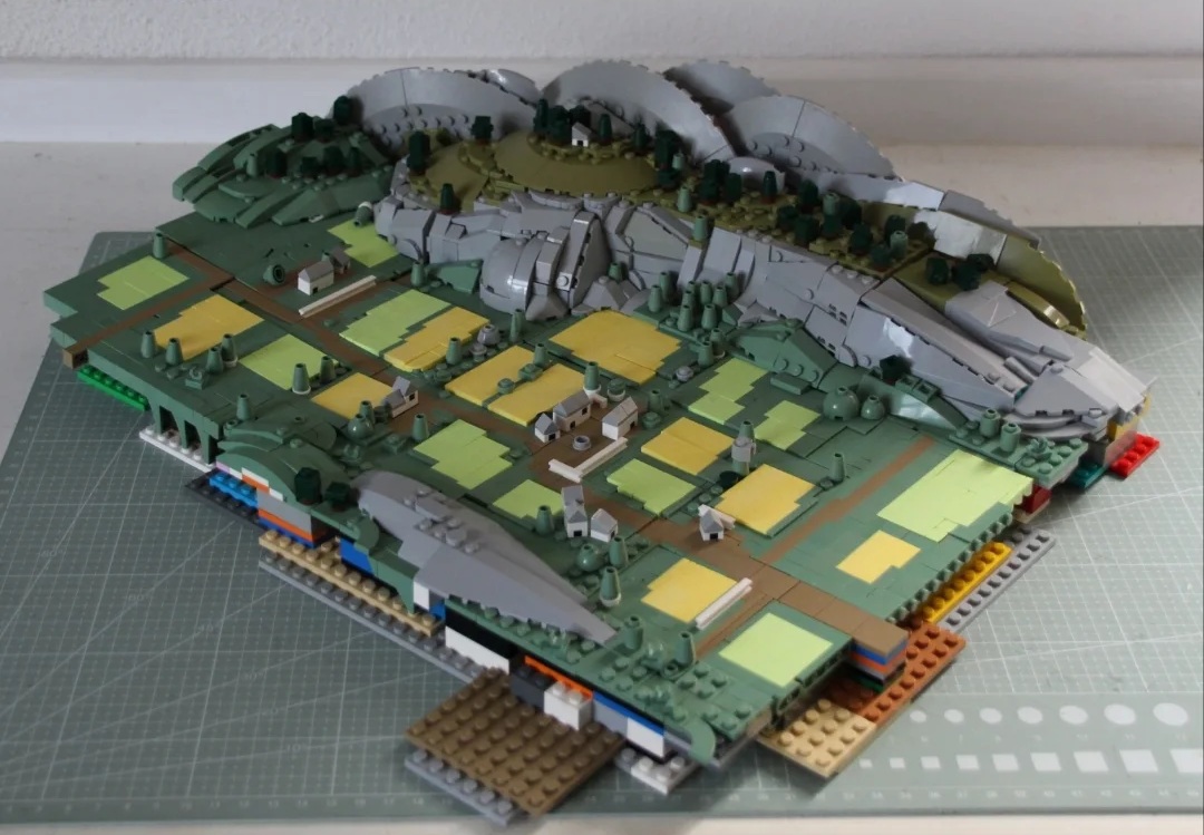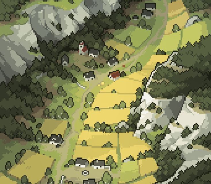 The idea for this moc came, as usual, from wandering on Pinterest to seek inspiration. Pinterest is packed with fantastic arts of all kinds, making it really easy to gather inspiration, even if AI art is spreading there like crazy nowadays. One day, I came across a series of pixelated microscale landscapes such as valleys with villages, hills and fields that caught my attention. At first I thought it was yet another AI image, but I was informed it came from a human – Franek pixel art. The person behind it even made a game, so beautiful.