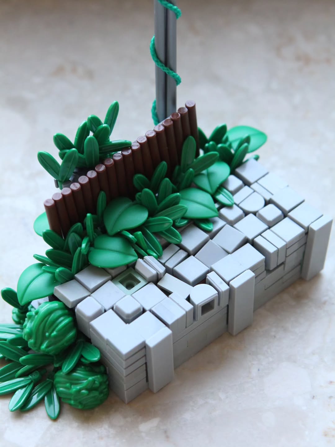 There’s so much to admire from the fence of brown rods, to the sidewalk of loosely configured tiles and hammers. My favorite detail is the three leaf plant sunken into the ground to hide the long stems. Cloudy cites Daniel Cloward and modulexfan as inspirations – clearly learning from the best! We’ll be watching Cloudy closely to see what brilliant creations this young builder will share in future.
