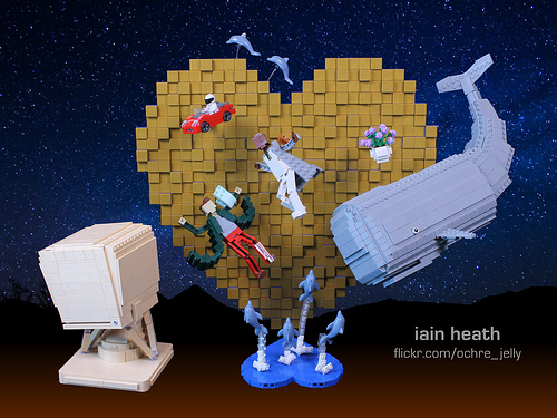 To mark the show’s anniversary, the BBC is launching an all-new radio adaption which begins today! Above is my personal LEGO tribute to this frequently-quoted staple of British popular culture. It depicts various Hitchhiker’s Guide characters floating helplessly in space (including a small Easter egg in honor of one particularly famous Adams fan).