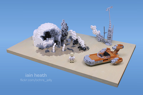 By now we’ve seen almost every scene from the Star Wars franchise meticulously and repeatedly recreated as a LEGO diorama, except for one… When Luke receives the Empire’s calling card, in the form of the still-smoking remains of his Uncle Owen and Aunt Beru in Star Wars: A New Hope. So I thought I’d rectify this glaring oversight by the LEGO community!
