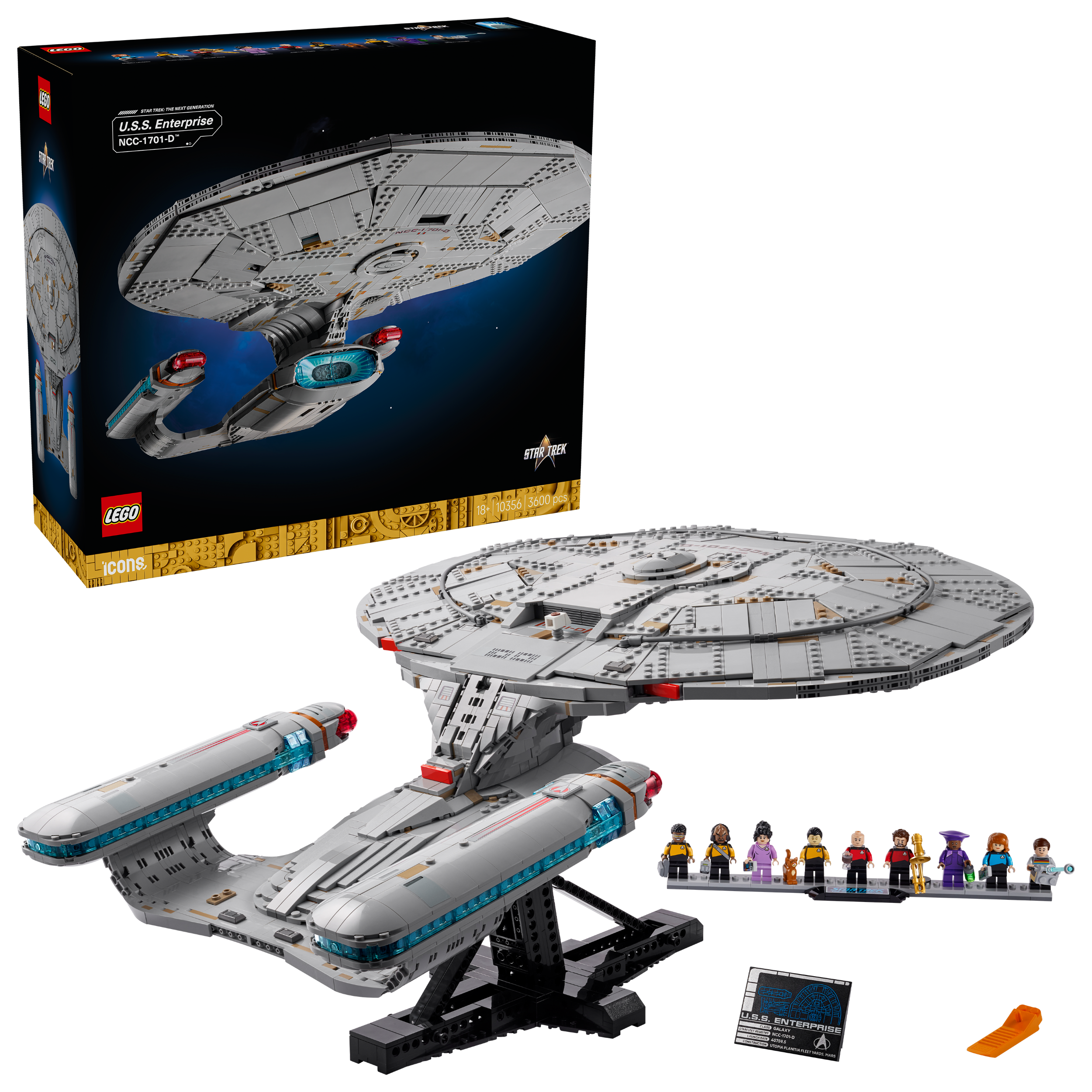 Star Trek, the final frontier of fandom, is coming at last to LEGO this month with the Black Friday release of LEGO Icons 10356 U.S.S. Enterprise NCC-1701-D from Star Trek: The Next Generation. The 3,600 piece set is designed by Hans B. Schlömer (no stranger to big ships, having also designed the Millennium Falcon and Endeavor) with graphic design by Crystal Marie Fontan, who wonderfully captures the look of the crew across the 9 included minifigures. The massive display set features one play feature – a removable saucer section. When the set goes on sale on Black Friday, November 28, it comes with a Gift With Purchase of the Shuttlepod Onizuka and exclusive minig Ensign Ro.
