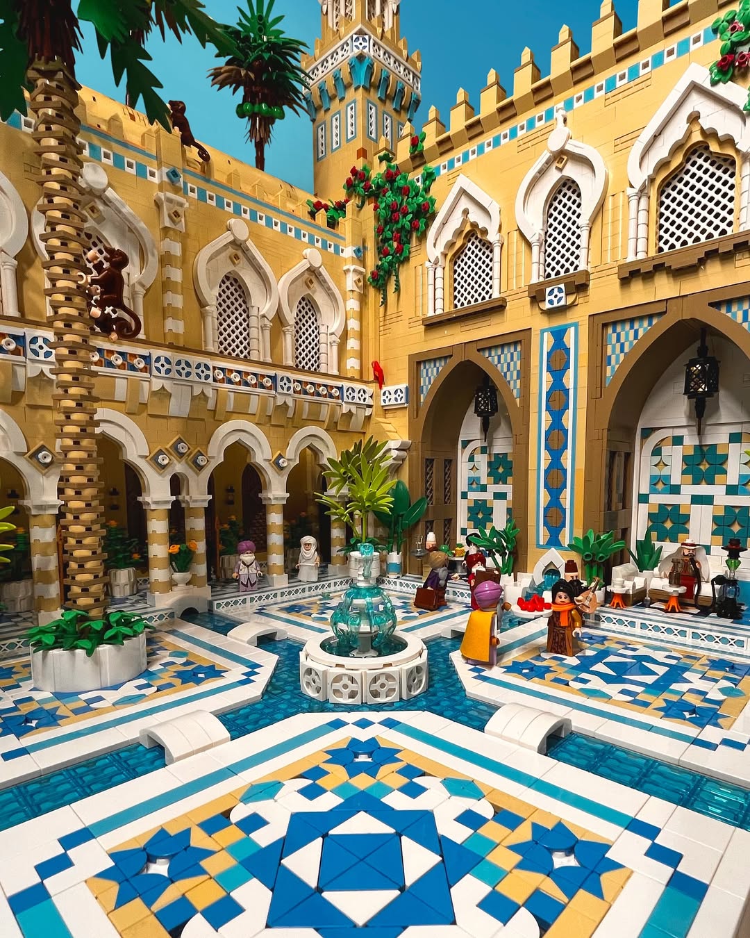 In previous builds, Luke (cathedralofbricks) has taken us to fairy tale castles, swashbuckling seas, and even Middle-earth. The builder’s latest wonder transports us to Marrakech at the height of the Saadian Sultinate. As he hinted at in our last interview, Luke has at last applied his gift for archways and grandeur to Moroccan architecture. It’s an incredible diorama that impresses in both scale and detail.