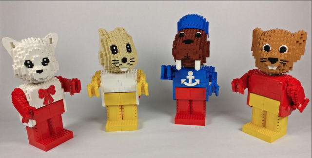 Builder Koen Van Der Biest is a master of the brick built figure. His subjects are many and include a range of well-known video game and cartoon characters. This time he goes meta-LEGO with this collection of charming Fabuland characters. I’m a huge fan of Fabuland and these recreations are spot on from Walter Walrus’ anchor to the cat’s cute bow. The faces are nicely rendered and perfectly capture the original characters’ personalities.