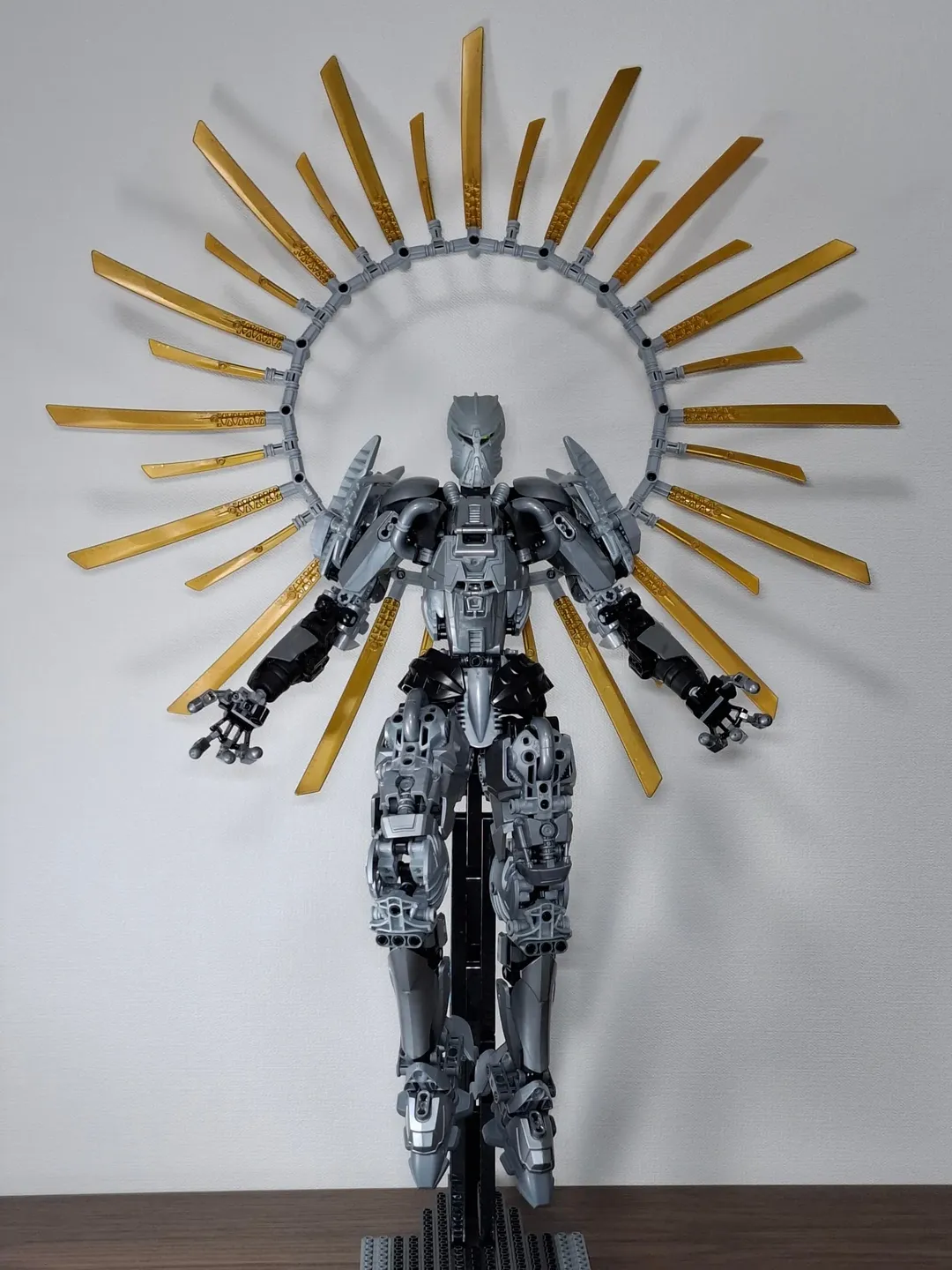 While LEGO celebrates 15 years of Ninjago, afols of a certain age remember that this year also marks 25 years since the debut of Bionicle, LEGO’s radical move from bricks that may have saved the company. Even though there hasn’t been a proper Bionicle set in a decade, the spirit of Mata Nui burns strong with a vibrant fan community. Japanese builder gre_midoro is the latest afol to revisit the Bionicle universe with modern interpretations. First, we have Gre’s take on the Great Spirit Robot, the ultimate figure in Bionicle lore who was never represented in an official set. The living embodiment of Mata Nui wears the Mask of Life and stands before a halo of swords.